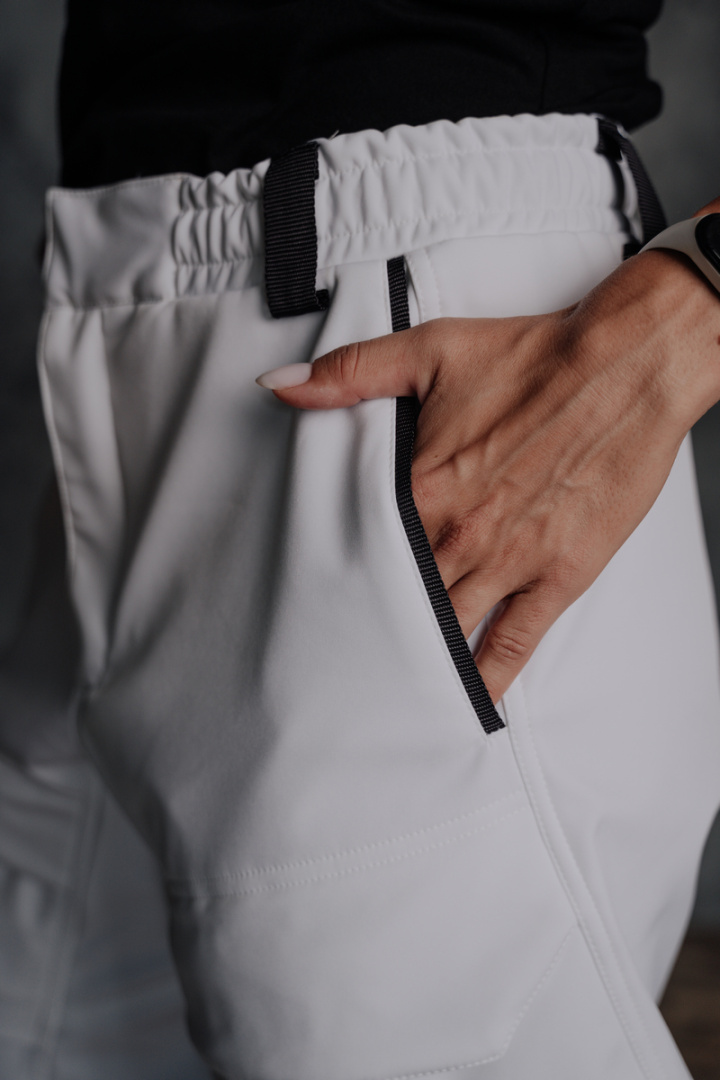 • Низ джоггеров фиксируется широкой резинкой, для избежание затекания ног и дискомфорта внутри сноубордического ботинка.